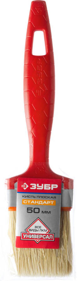 ЗУБР 50 мм, 2", светлая натуральная щетина, пластмассовая ручка, кисть плоская УНИВЕРСАЛ-СТАНДАРТ 01015-050