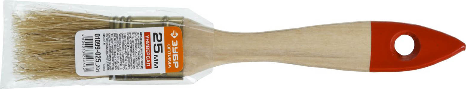 Кисть плоская ЗУБР "УНИВЕРСАЛ-ОПТИМА", светлая щетина, деревянная ручка, 25мм