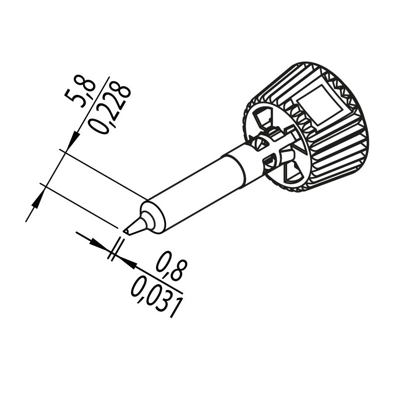 в форме долота, асимметричный конус, ширина 0,8 мм