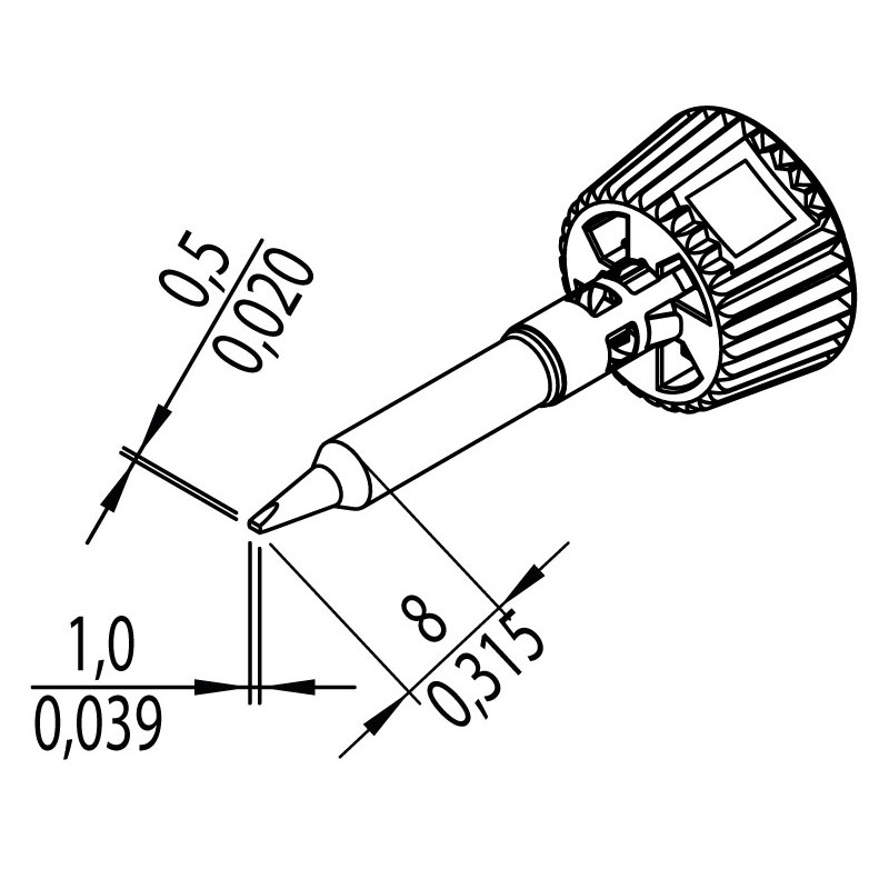 конус, на конце клин, ширина 1,0 мм, толщина 0,5 мм