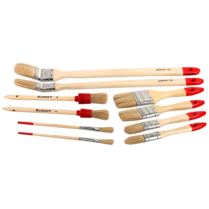 Набор STAYER Кисти ″UNIVERSAL-STANDART″, светлая натур. щетина, деревян. ручка. Плоские, круглые и радиаторные 0163-H10