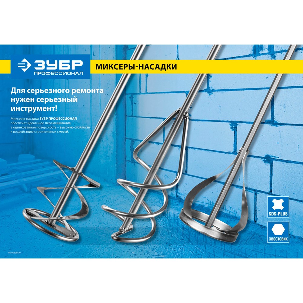 Миксер ЗУБР "ПРОФЕССИОНАЛ" для красок, шестигранный хвостовик, оцинкованный, 80х400мм