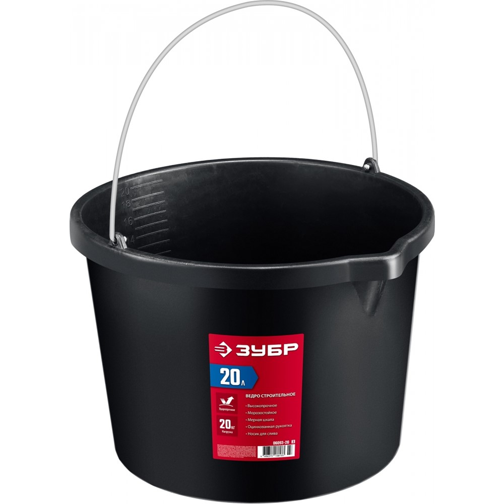 Строительное пластиковое ведро ЗУБР 20 л, высокопрочное с носиком МАСТЕР (06093-20)