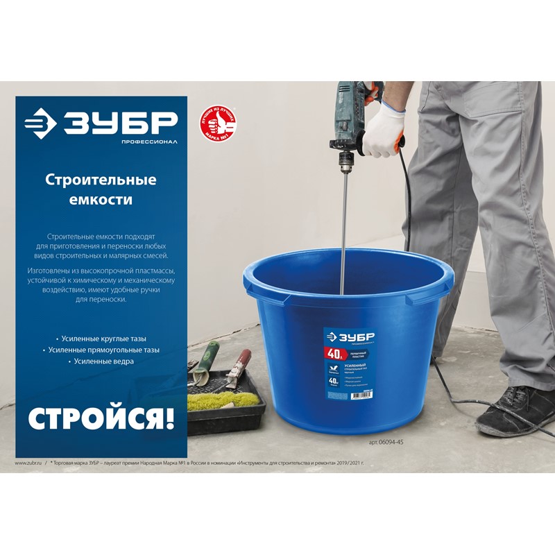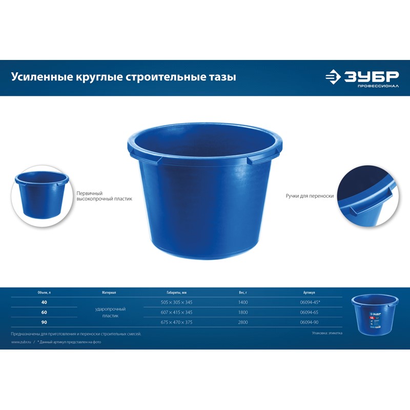 Усиленный круглый строительный таз ЗУБР 60 л МАСТЕР (06094-65)