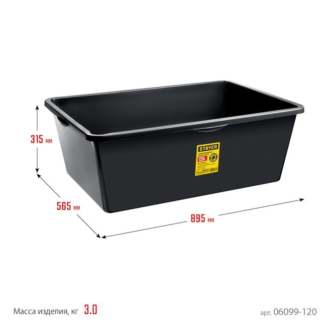 Таз строительный STAYER 06099-120_z01, предназначен для приготовления и переноски строительных смесей