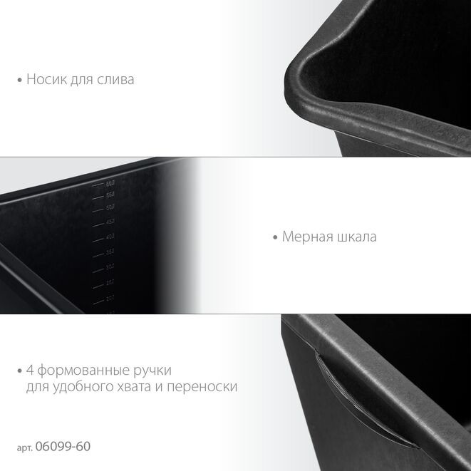 Таз строительный STAYER 06099-60_z02, предназначен для приготовления и переноски строительных смесей
