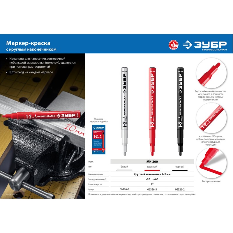 ЗУБР МК-200 1 мм, круглый, зеленый, Маркер-краска, ПРОФЕССИОНАЛ (06326-4)