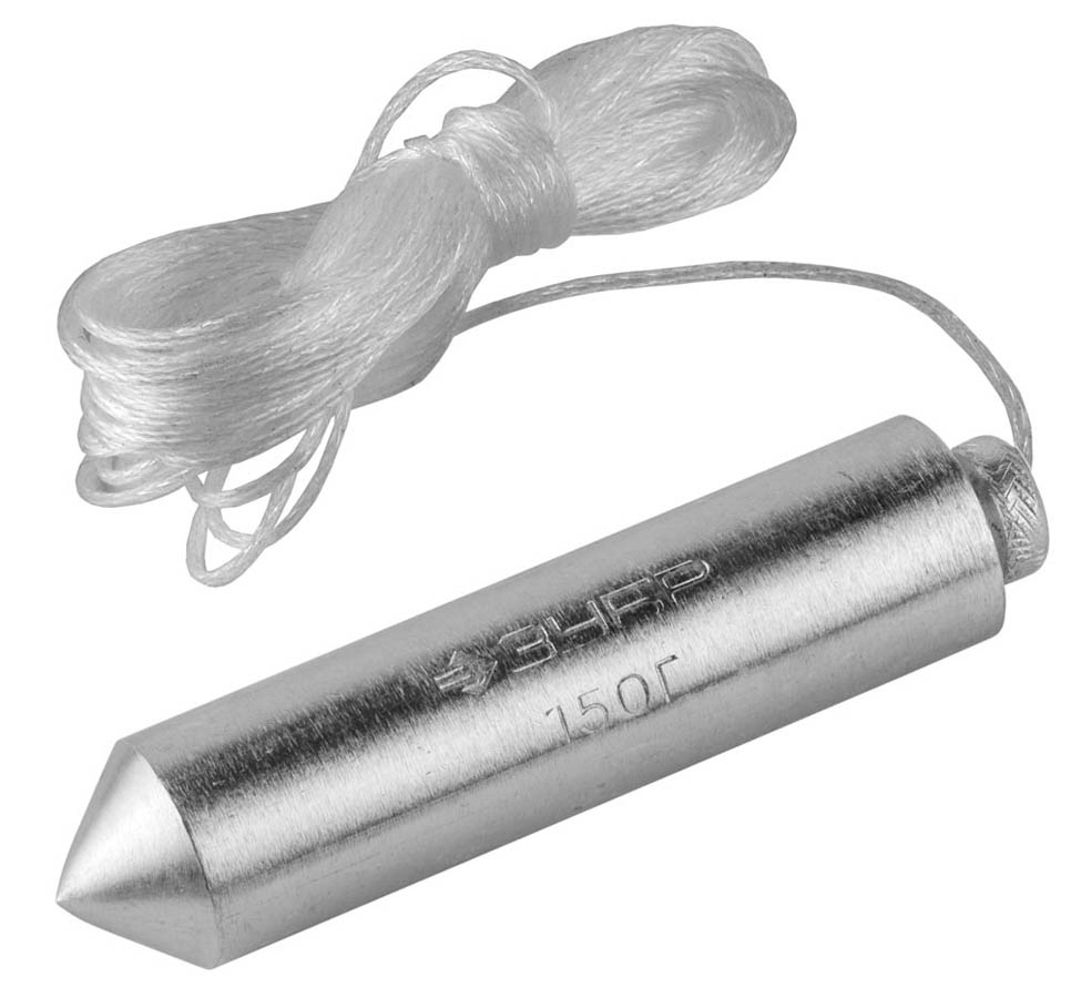 Отвес строительный со шнуром ЗУБР 0636-150_z01, предназначен для контроля вертикали и разметки поверхности при строительных и отделочных работах. Поверхность отвеса оцинкована для защиты от коррозии, конструкция отвеса обеспечивает идеальную центровку, а плетеный шнур уменьшает вращение отвеса.