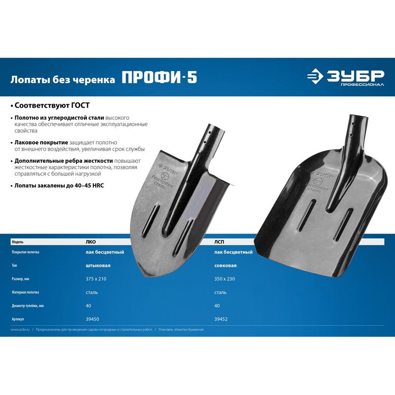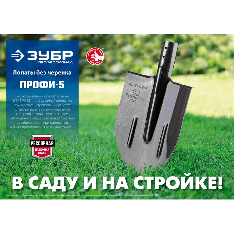 Штыковая лопата c ребрами жесткости ЗУБР ПРОФИ-5, ЛКО, без черенка