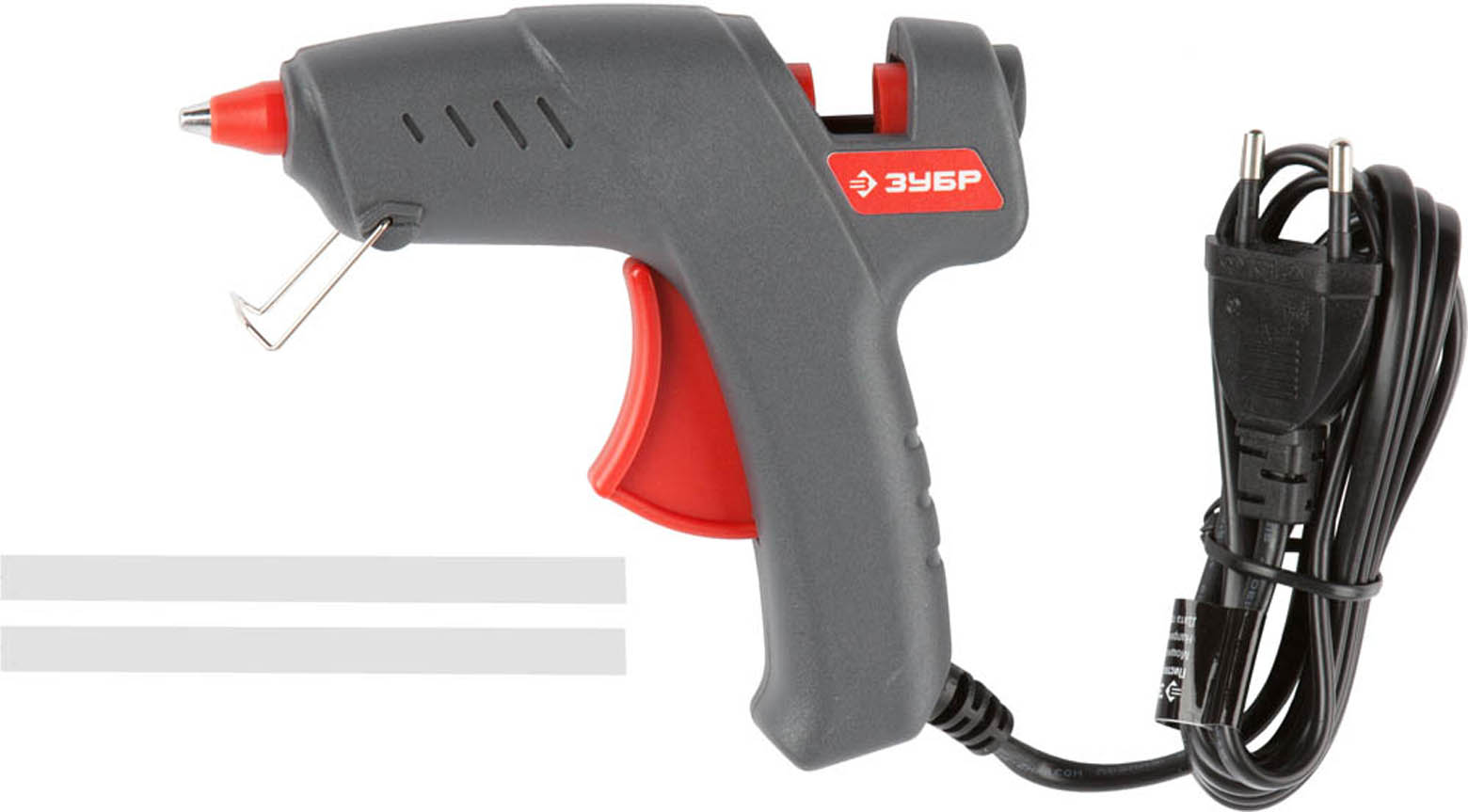 Клеевой пистолет ЗУБР 06850-20-08_z01, предназначен для надежного склеивания различных материалов: древесина, металл, керамика, стекло, пласт- масса, кожа, ткань – при помощи разогретого клея. Контроль количества наносимого клеевого состава осуществляется благодаря устройству механической подачи.
