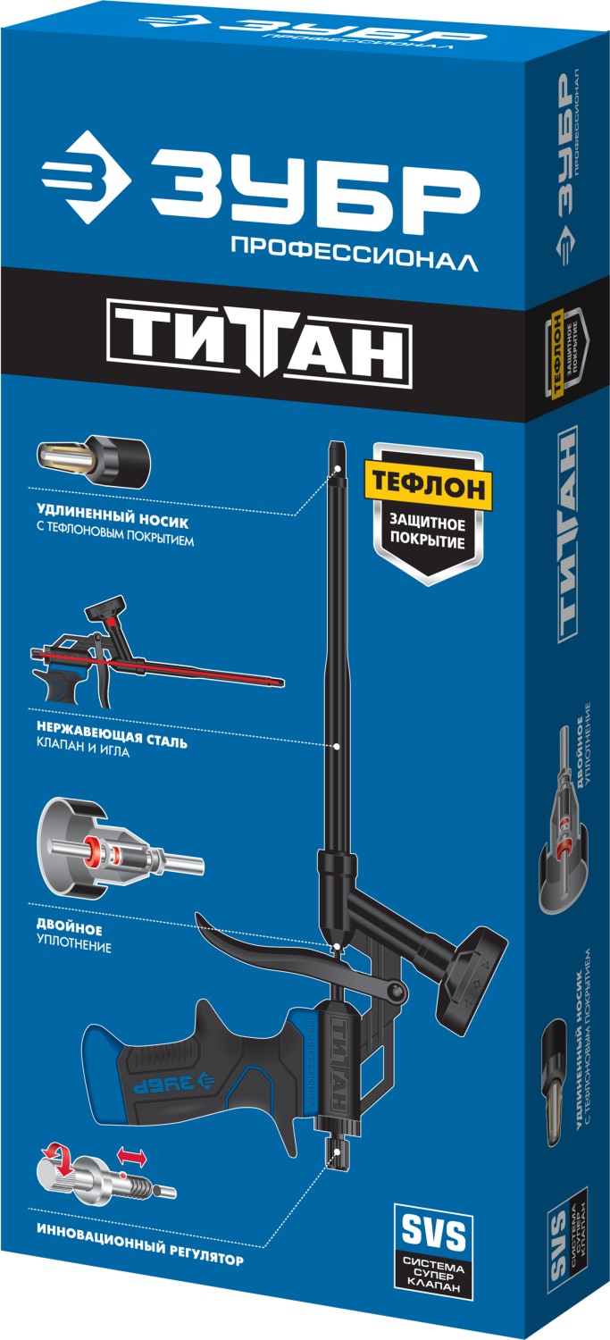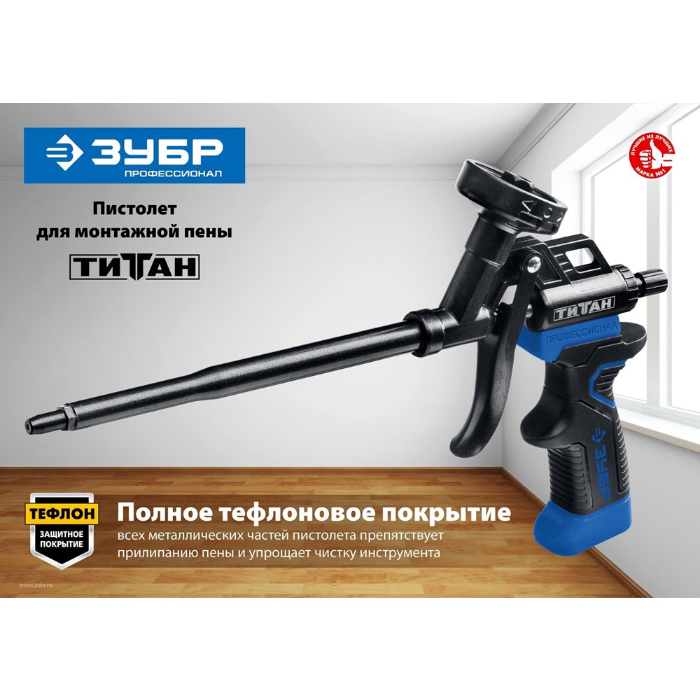 Пистолет для монтажной пены "ТИТАН", металлический корпус, тефлоновое покрытие, ЗУБР
