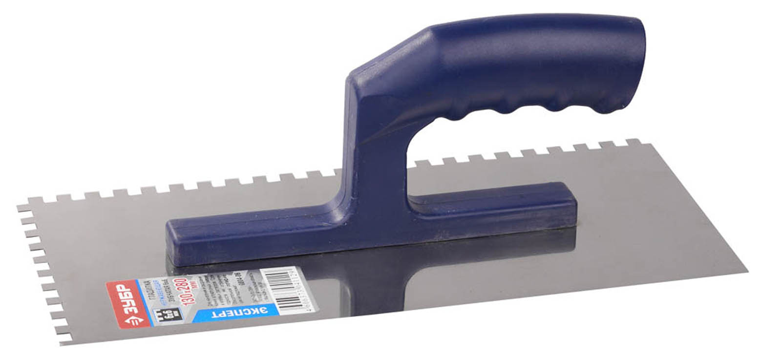 ЗУБР Профи 130х280 мм, 6х6 мм, гладилка штукатурная зубчатая нержавеющая с пластиковой ручкой. Серия Профессионал.