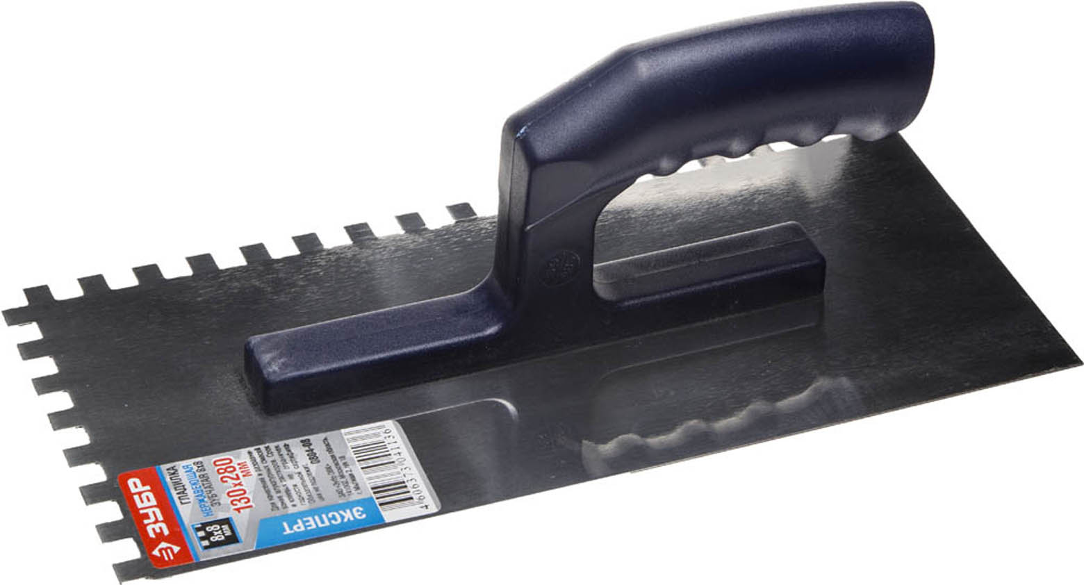 ЗУБР Профи 130х280 мм, 8х8 мм, гладилка штукатурная зубчатая нержавеющая с пластиковой ручкой. Серия Профессионал.