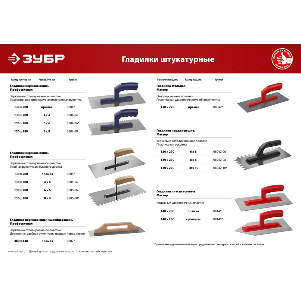 Гладилка штукатурная ЗУБР 0806-04_z01, предназначена для нанесения и распределения штукатурных смесей и клеевых составов. Полотно из нержавеющей стали, зеркально отполированное, обеспечит надежность конструкции, лучшую защиту от коррозии, а удобная деревянная рукоять обеспечит комфортную работу при нанесении и распределении штукатурных смесей и клеевых составов.