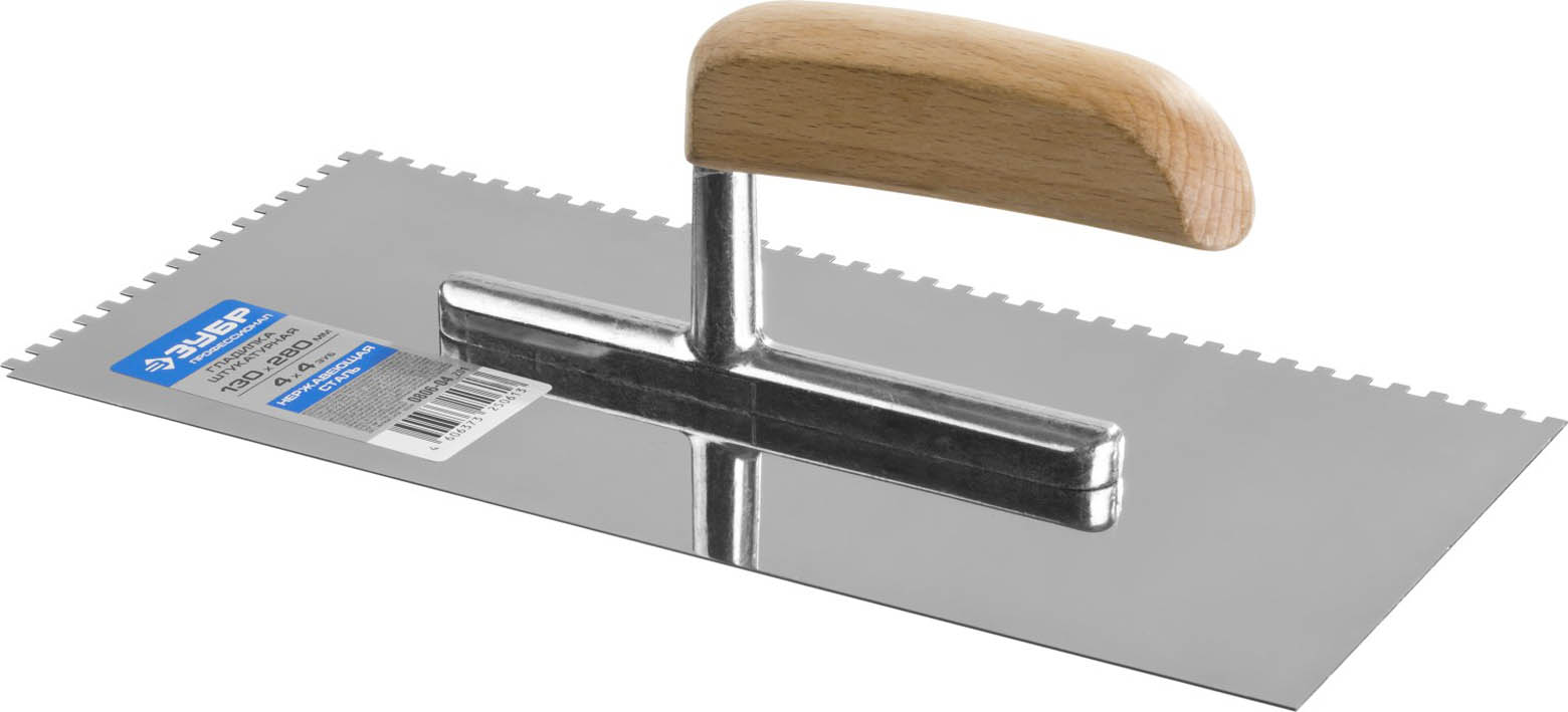 ЗУБР Эксперт 130х280 мм, 4х4 мм, гладилка штукатурная зубчатая нержавеющая с деревянной буковой ручкой. Серия Профессионал. (0806-04_z01, )