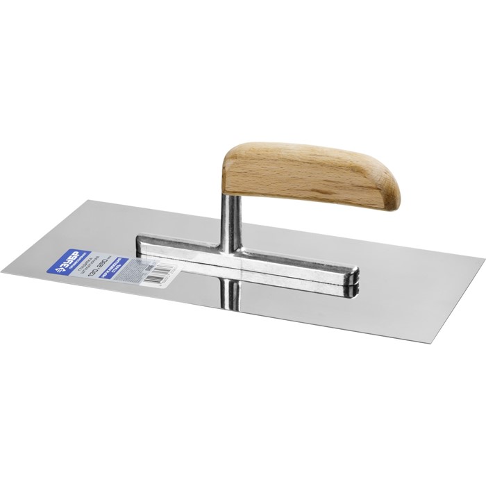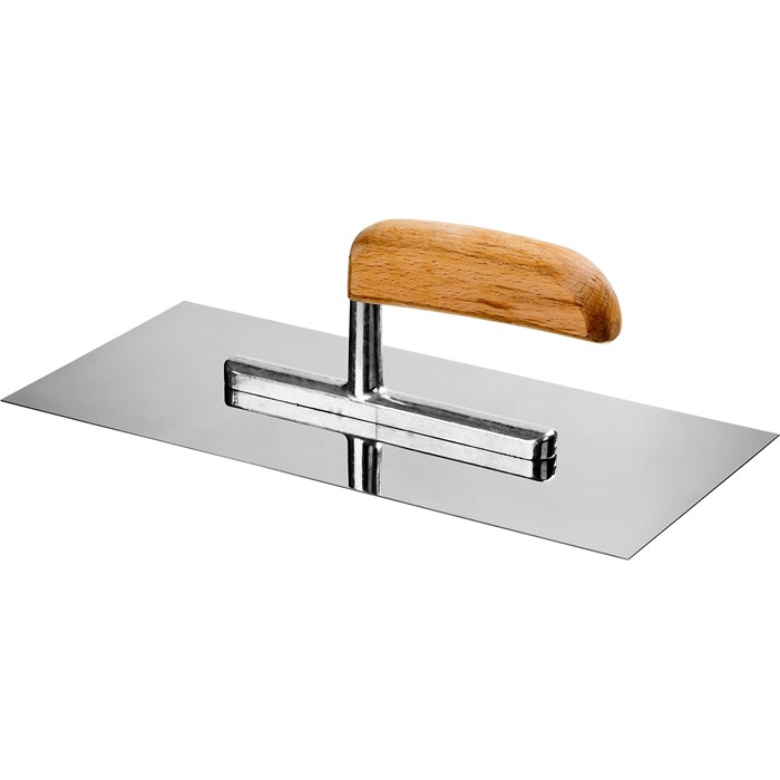 - Зеркально отполированное нержавеющее полотно обеспечит надежность конструкции, лучшую защиту от коррозии, а удобная деревянная рукоять обеспечит комфортную работу при нанесении и распределении штукатурных смесей и клеевых составов.