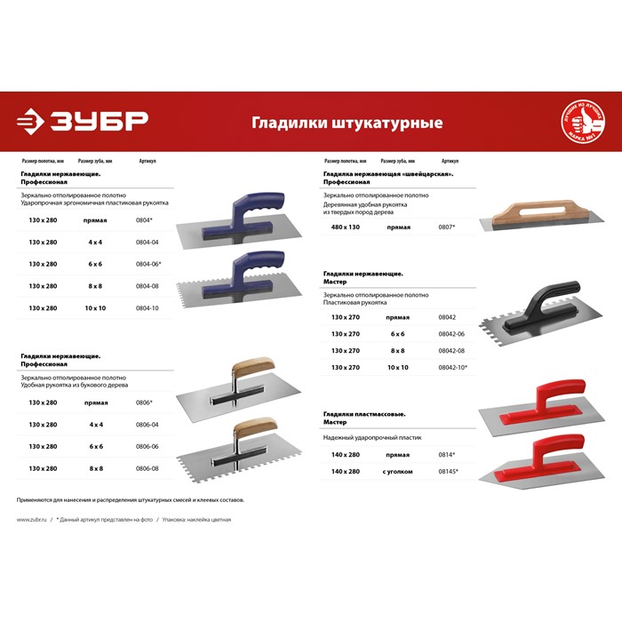 Гладилки нержавеющие с деревянной ручкой Зубр Эксперт 0806