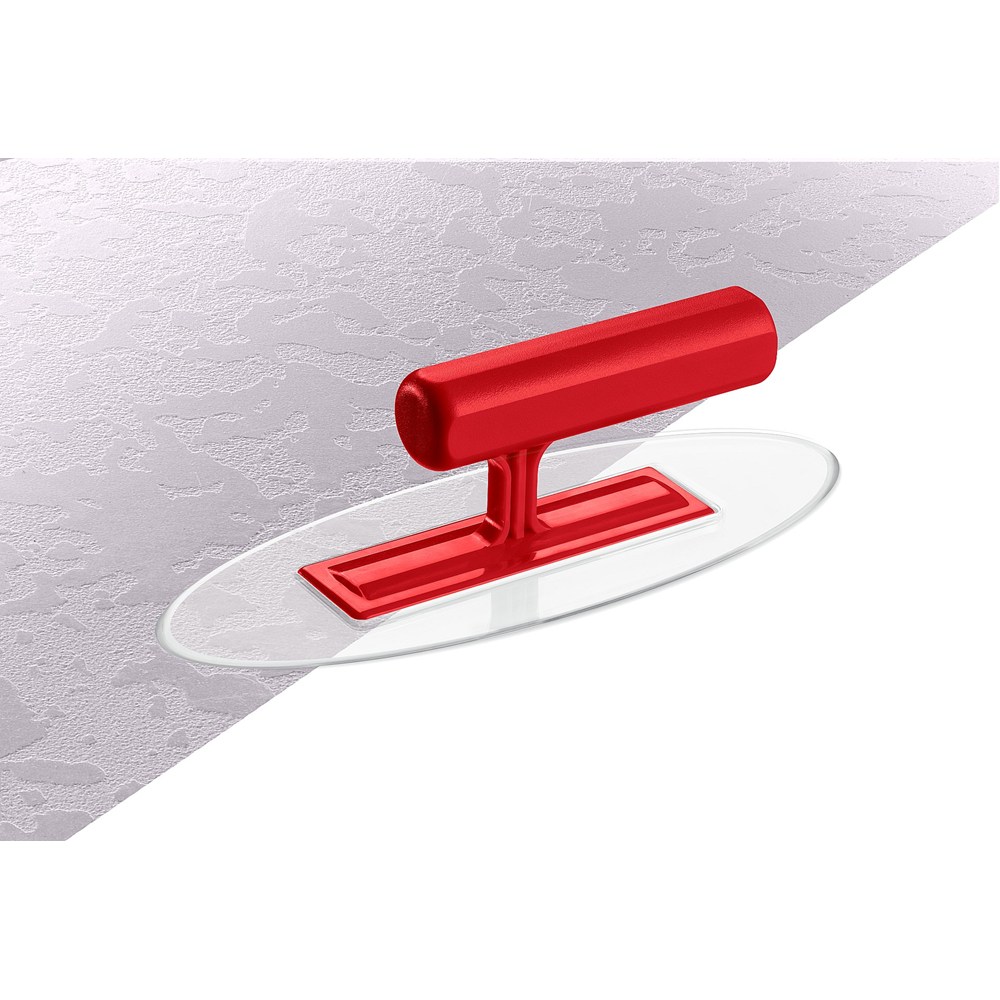Инструмент произведен из ударопрочной пластмассы, которая позволяет добиться не только высокой эластичности полотна и ручки, но и повысить прочность всей конструкции в целом. Особенность данной модели - прозрачное полотно, позволяющее видеть текстуру разглаживаемой штукатурки