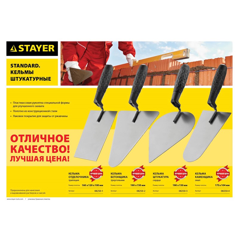Кельма каменщика STAYER "STANDARD" с пластмассовой ручкой, КК