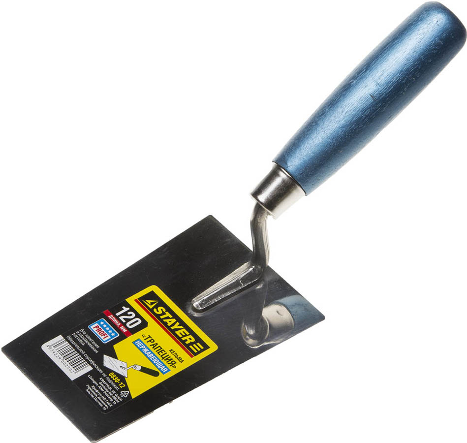 Кельма STAYER "PROFI", "трапеция", нержавеющее полотно, деревянная рукоятка, 120мм