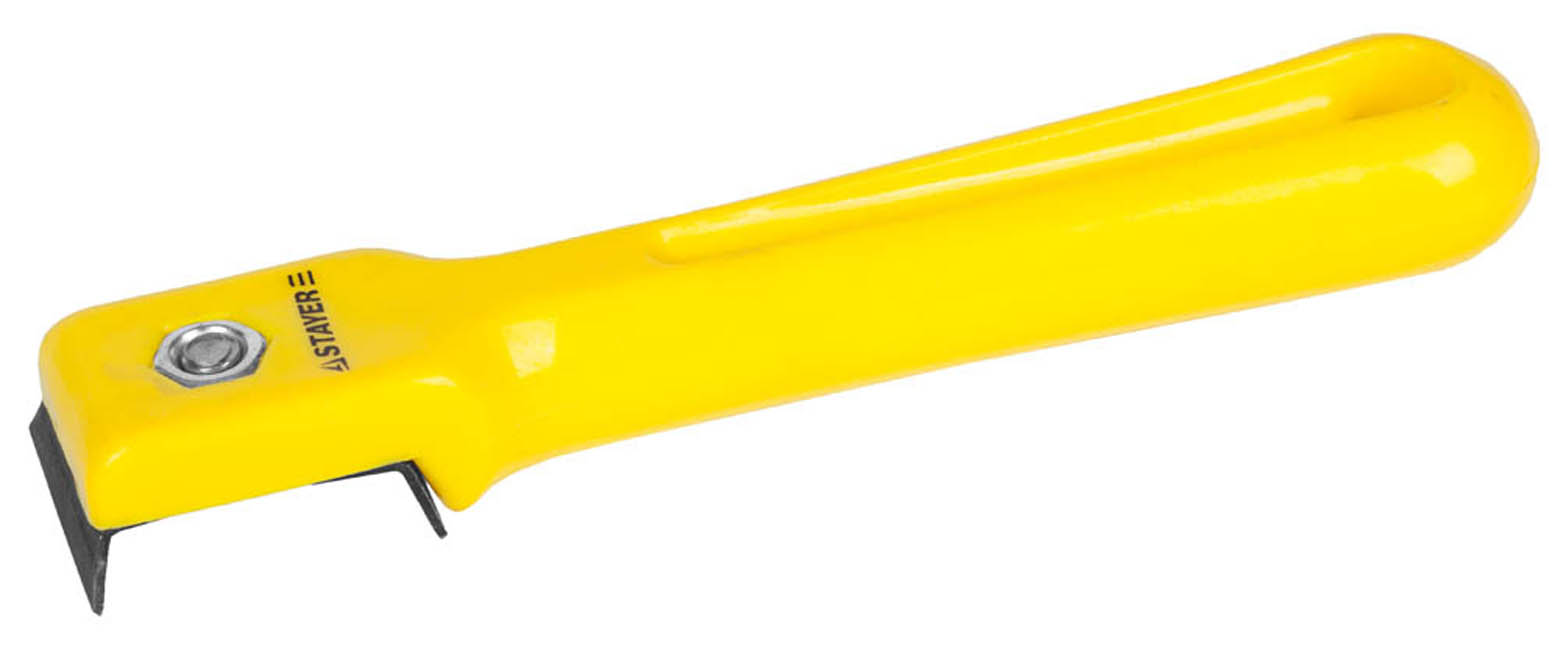 Цикля пластмассовая STAYER 08605-14, предназначена для снятия с поверхности различных загрязнений, таких как лак, краска, клей и т.д.
