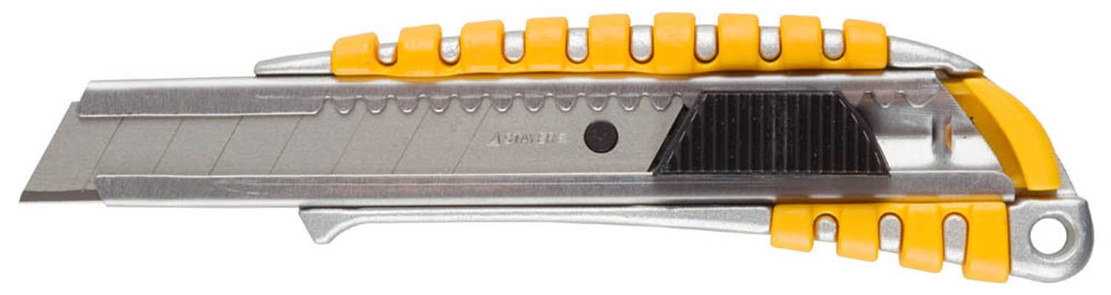 Нож STAYER "MASTER" металлический обрезиненный корпус, автостоп, 18мм