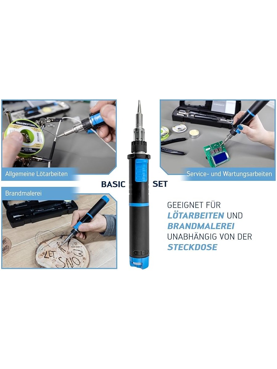 Паяльник может работать на одной заправке до 2 часов. Максимальная температура пайки может достигать 580°С.
