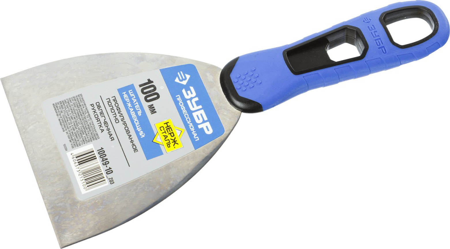 Шпатель ЗУБР "ПРОФЕССИОНАЛ" профилированное нержавеющее полотно, 2к ручка, 100мм