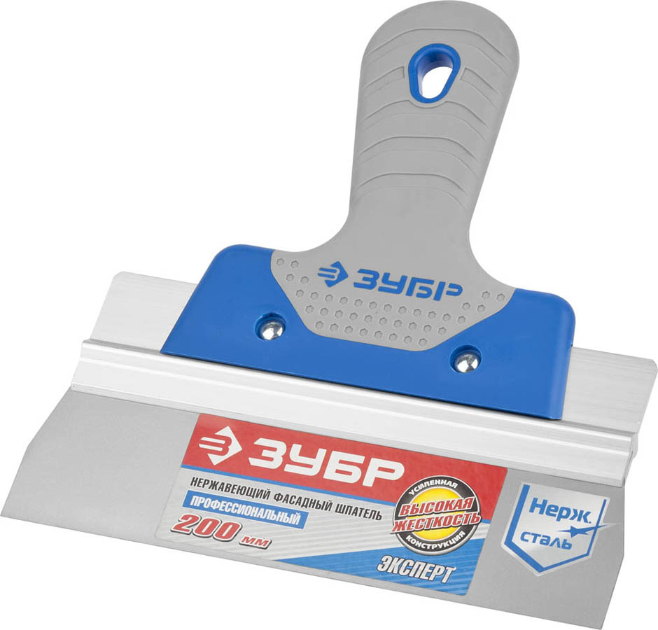 ЗУБР 200 мм, нержавеющее полотно, двухкомпонентная рукоятка, шпатель фасадный 10049-20_z02