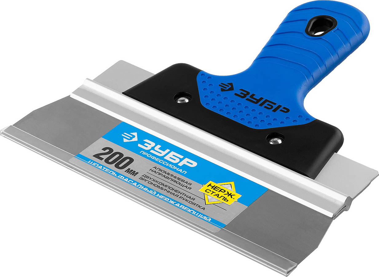 Шпатель ЗУБР "ПРОФЕССИОНАЛ" ФАСАДНЫЙ нержавеющий, 2к ручка. 200мм