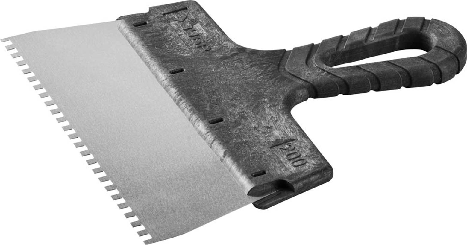 Шпатель ЗУБР "МАСТЕР" ФАСАДНЫЙ, нержавеющее полотно, 200мм, зуб 4х4мм