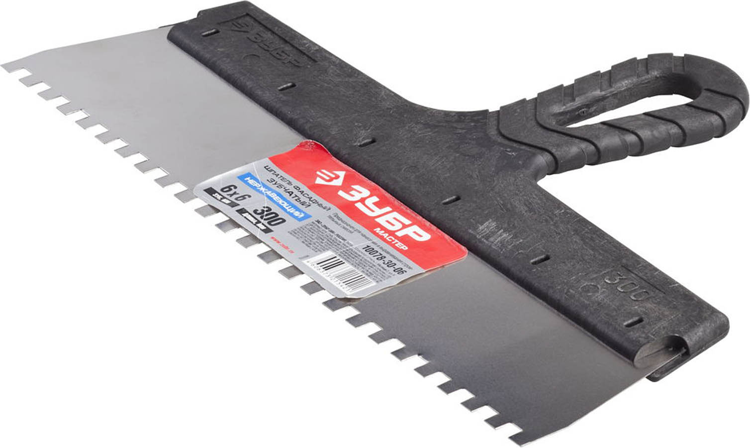 Шпатель ЗУБР "МАСТЕР" ФАСАДНЫЙ, нержавеющее полотно, 300мм, зуб 6х6мм