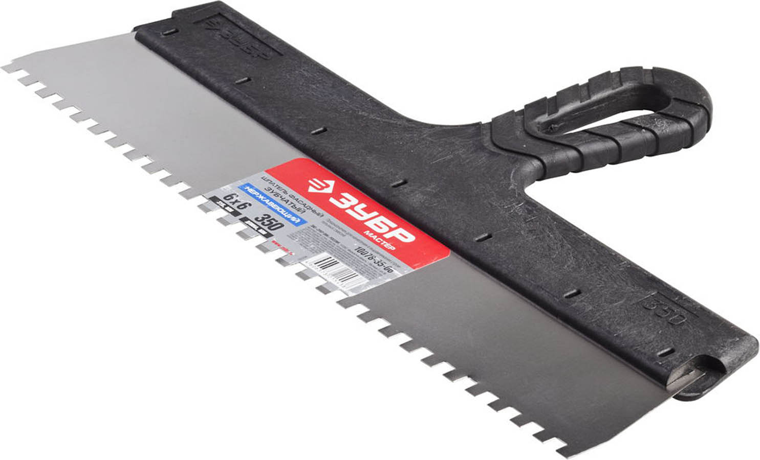 Шпатель ЗУБР "МАСТЕР" ФАСАДНЫЙ, нержавеющее полотно, 350мм, зуб 6х6мм