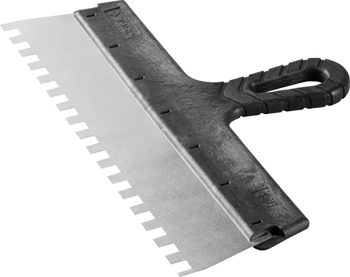 Шпатель ЗУБР "МАСТЕР" ФАСАДНЫЙ, нержавеющее полотно, 350мм, зуб 10х10мм