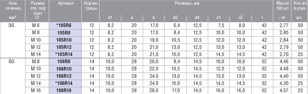 Медные трубчатые наконечники по стандарту DIN 46235, M16 / 50 мм KLAUKE 106R16