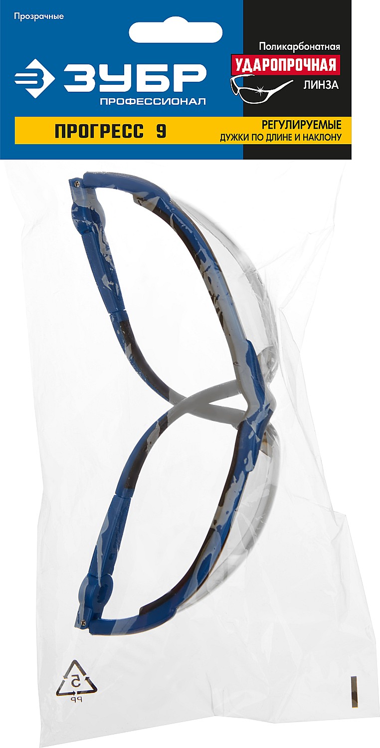 ЗУБР Прогресс 9 Прозрачные, очки защитные открытого типа, регулируемые дужки.