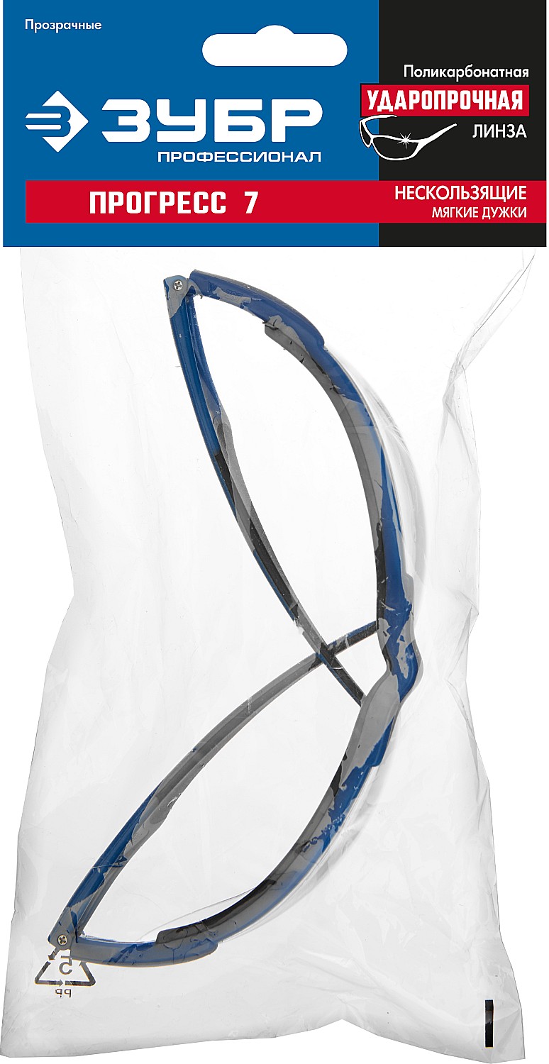 ЗУБР Прогресс 7 Прозрачные, очки защитные открытого типа, мягкие двухкомпонентные дужки.