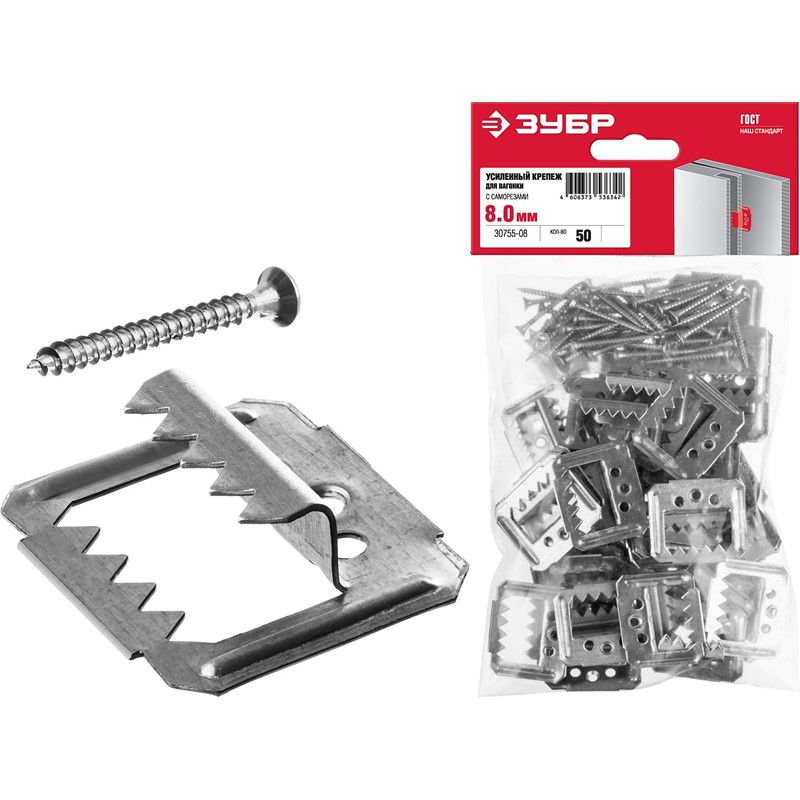 Усиленный крепеж для вагонки ЗУБР 8 мм, 50 шт с саморезами, Кляймер-У2