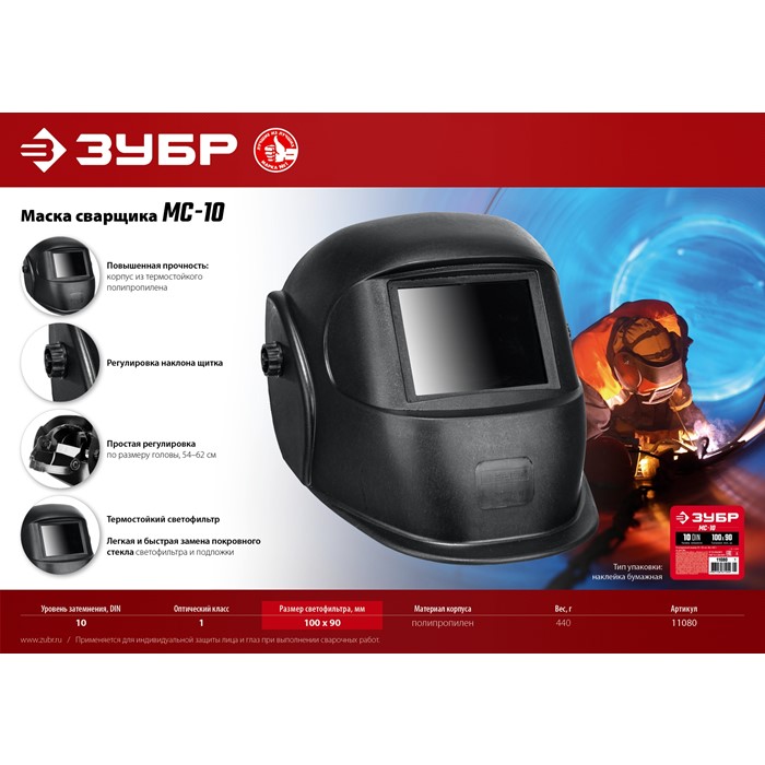 Маска сварщика со стеклянным светофильтром 11080_z01 Зубр