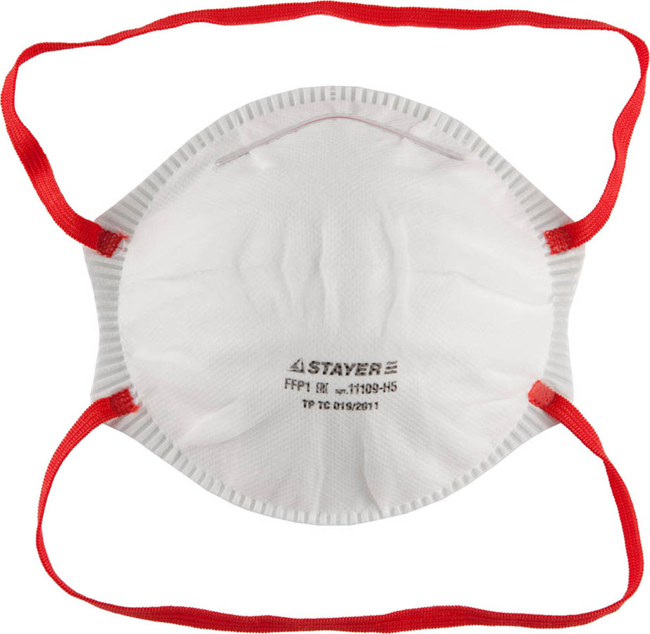 STAYER класс защиты FFP1, 5 шт., коническая, FFP1, полумаска фильтрующая многослойная 11109-H5