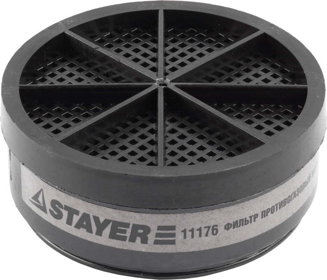 Фильтрующий элемент STAYER 11176, предназначен для защиты от вредных веществ в виде органических газов и паров с температурой кипения свыше 65°С, таких как: пары бензина и керосина, циклогексан, сероуглерод, толуол, ксилол, различные спирты и эфиры. Используется при объемной доле свободного кислорода в воздухе не менее 17% и суммарной концентрации вредных веществ, превышающей предельно допустимые концентрации (ПДК) не более чем в 15 раз. Работоспособен во всех климатических зонах РФ по ГОСТ 15150.