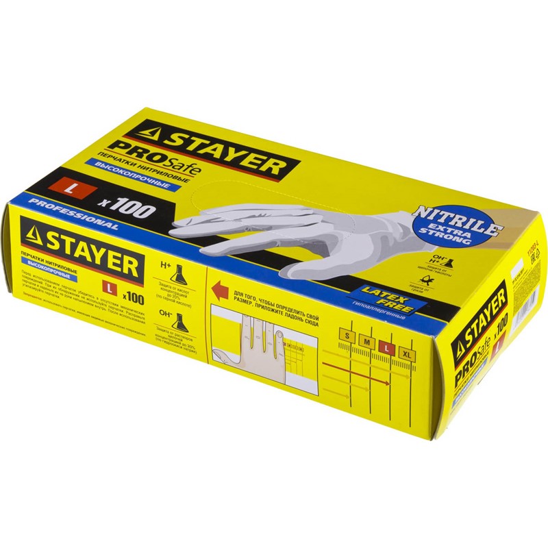 STAYER L, нитриловые экстратонкие, 100 шт., перчатки экстратонкие 11203-L