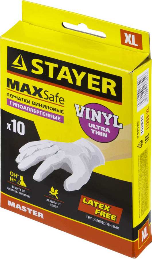 STAYER XL, виниловые экстратонкие, 10 шт., перчатки экстратонкие 11208-XL