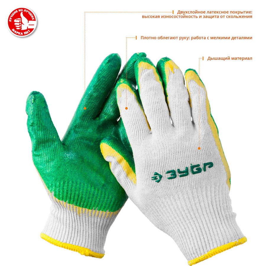 Перчатки рабочие ЗУБР 11459-XL, предназначены для защиты от общих производственных загрязнений и скольжения. Повышенная износостойкость обеспечивает долгий срок службы. Применение технологии бесшовной вязки создает повышенный комфорт при работе. Натуральный дышащий материал позволяет работать в них не снимая, длительное время. Эластичны, плотно облегают руку, что позволяет работать с мелкими предметами.
