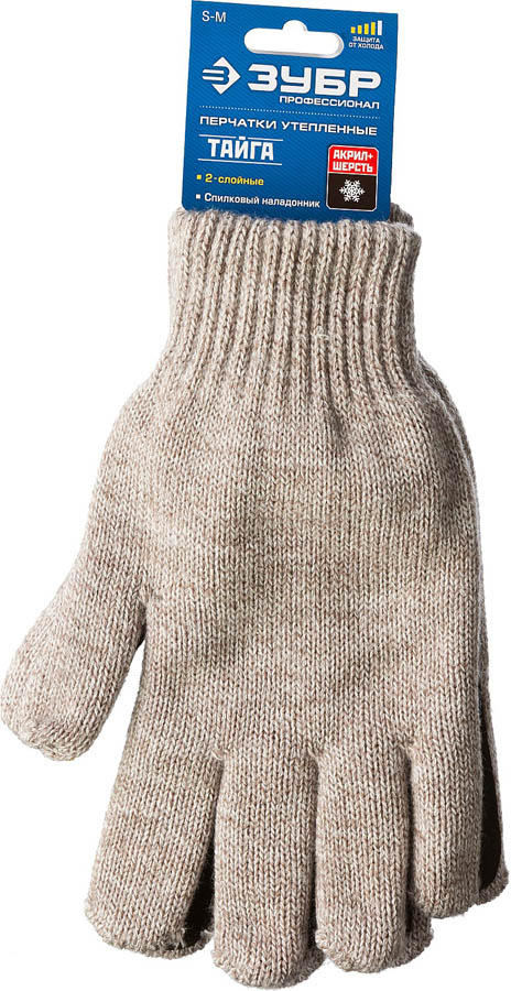 ЗУБР S-M, 7 класс, акрил+полушерсть, со спилковым наладонником, перчатки утепленные Тайга 11467-S