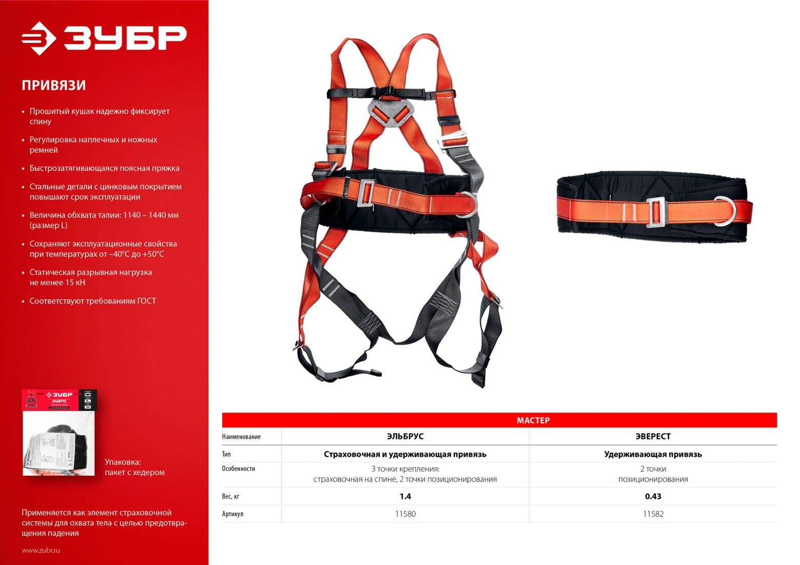 Эверест удерживающая привязь, ЗУБР