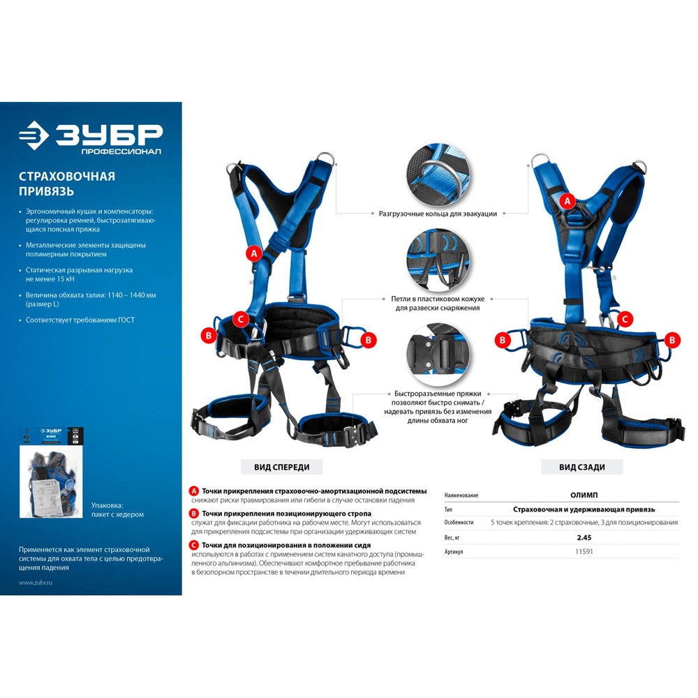 Олимп страховочная и удерживающая привязь, ЗУБР Профессионал