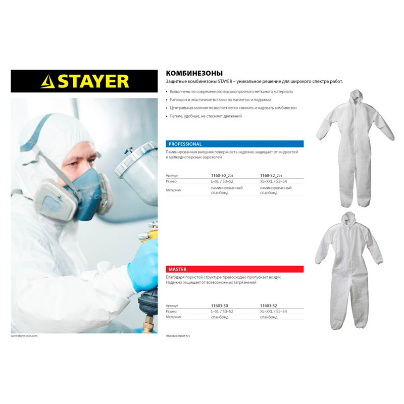 STAYER 50-52, из полипропилена, капюшон, комбинезон защитный 1160-50