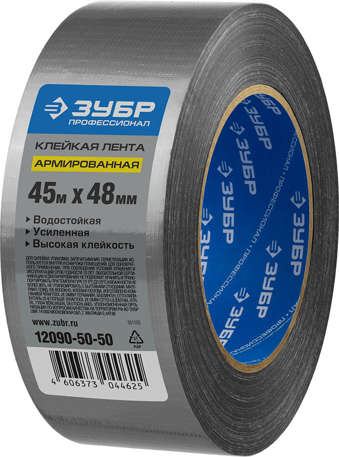 Армированная лента, ЗУБР Профессионал 12090-50-50, универсальная, влагостойкая, 48мм х 45м, серебристая