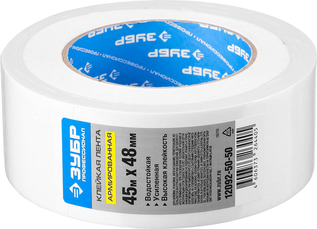 Армированная лента, ЗУБР Профессионал 12092-50-50, универсальная, влагостойкая, 48мм х 45м, белая